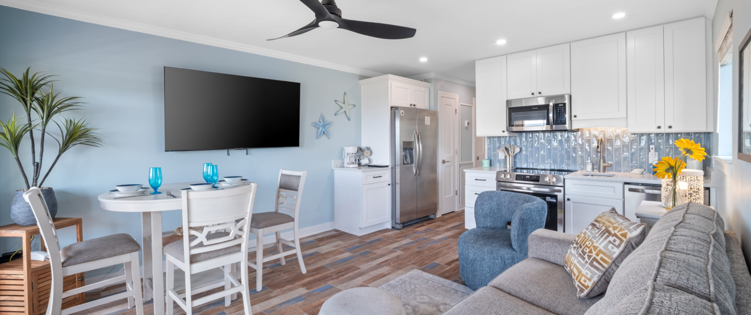 This cozy and freshly updated 1-bedroom, 1-bath condo is perfect for couples seeking a romantic escape or small family looking for a fun beach retreat. Fully Remodeled include fresh paint, a new king-size bed, a new queen sleeper sofa.